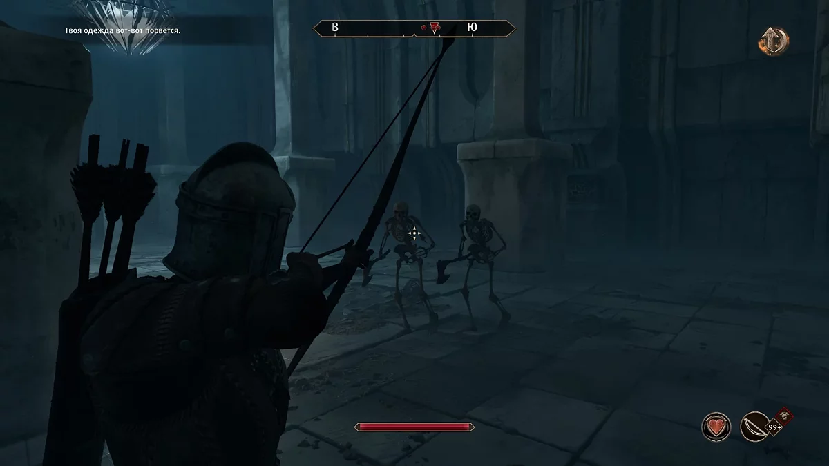Стрельба из лука стала приятнее и удобнее. Добавили прицел, с помощью которого проще целиться в противников. С новыми анимациями (например, натягивания тетивы) управление персонажем осуществляется на современном уровне. Теперь можно нормально играть за лучника и строить билд через скрытность. Да, такой роскоши не было в оригинале.