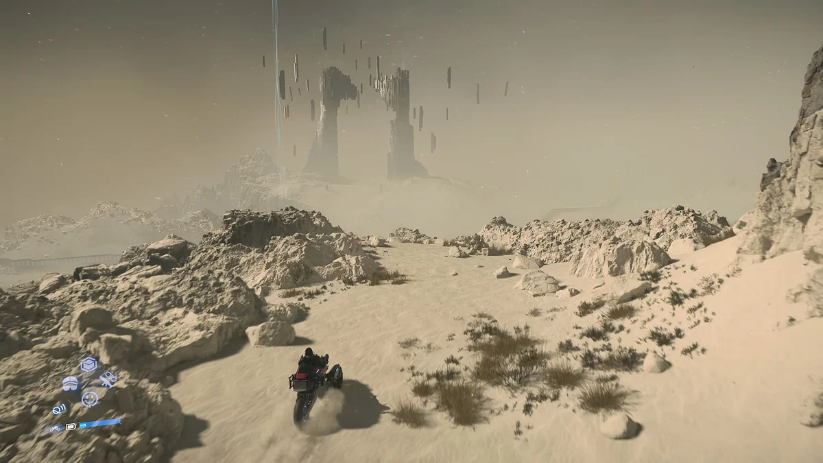 К тому же открытый мир — мертв. Несмотря на внимание к деталям, травинкам и пушинкам, в Death Stranding 2: On the Beach банально скучно находиться. Кроме бункеров, редких животных и пустынных пейзажей главного героя не окружает ничего. Неожиданных событий или незапланированных встреч не будет. Агрессивные люди и твари также сидят на строго отведенных базах или частях карты и даже на метр не выходят за пределы. Со временем появляются караваны других курьеров, но их всегда не больше двух-трех человек, а максимум взаимодействия — взаимный лайк. Коллег можно увидеть только рядом с бункерами. Где-то в отдалении никаких иных живых людей не будет.