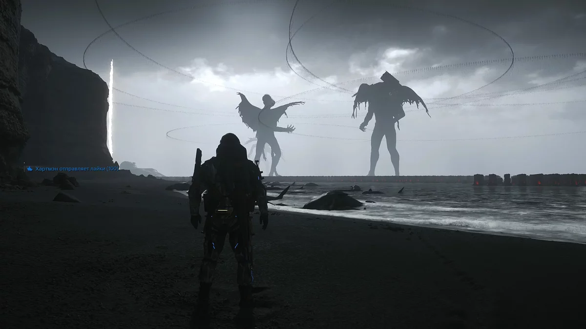 Нам осталось обсудить совсем немного, поэтому мы объединим оставшиеся элементы проекта в одном разделе. Начнем с хиральной сети — главной особенности серии Death Stranding. Игроки делятся на группы, после чего подключаются к серверам. В рамках группы у всех Сэмов — общий мир. Опять же, это никак не объясняется сюжетно, а главный герой может по нажатию кнопки прокричать просьбу о помощи, и ему ответит еще один Сэм — гениальность, вопросов нет.