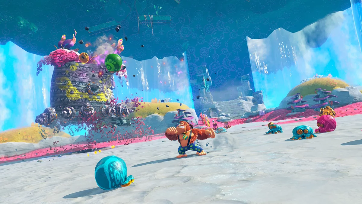 Механика разрушаемости идеально вписывается в игру про Донки Конга. Герой ощущается как Халк из комиксов Marvel: в его силу легко поверить, когда видишь, как всего парой ударов он сносит дом или оставляет после приземления на землю кратер. И главное — крушить и ломать так же весело в конце игры, как и в начале, благодаря сочетанию тактильной отдачи геймпада с выразительными визуальными и звуковыми эффектами. Можно часами наблюдать, как банандиевые самоцветы с треском разлетаются от ударов Донки Конга — и это немаловажно, потому что ломать их предстоит сотнями.