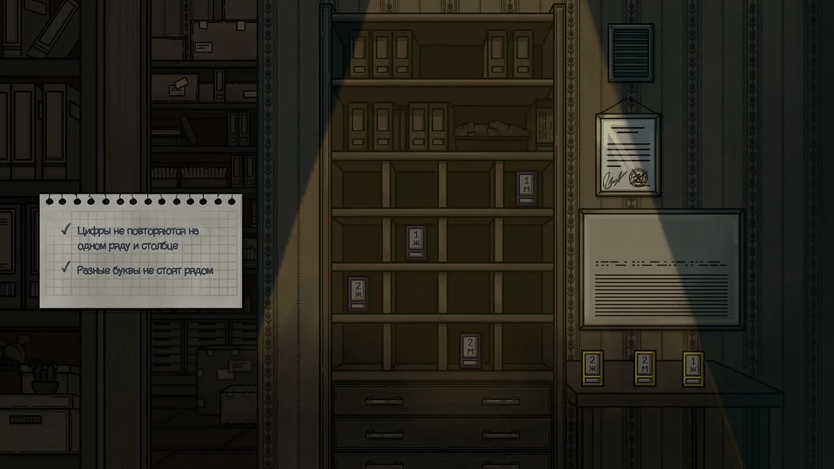 Формула point & click в Antioma подкреплена разнообразными мини-играми: есть некое подобие «Тетриса», судоку, тир и т.п. Когда Крохе нужно совершить какое-то ловкое действие, появляется quick time event (QTE) в виде горизонтальной полосы с бегающим ползунком, который нужно остановить в определенном секторе. Довольно простое геймдизайнерское решение, но оно работает — особенно в напряженных моментах.