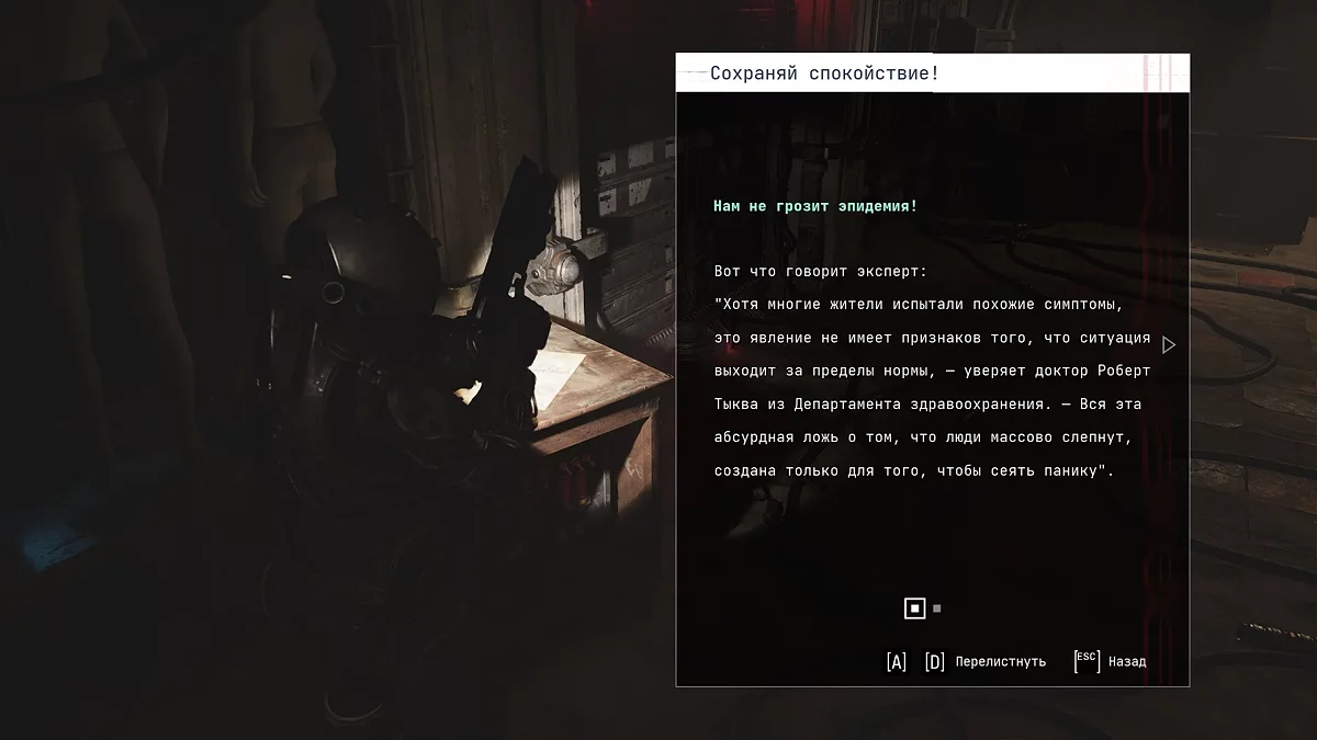 Завязка игры не дает какой-либо конкретики. Кто наш герой? Что конкретно произошло в городе? Почему улицы заполнены неизвестной субстанцией с мертвыми телами местных жителей? Недосказанность отлично работает на общую атмосферу и стимулирует тщательно изучать локации, читая записки и углубляясь в лор. Однако эйфория от диегетического повествования слишком быстро улетучивается, когда приходит осознание, что мы занимаемся ровно тем же, чем занимались в «симуляторах ходьбы» от Bloober Team.