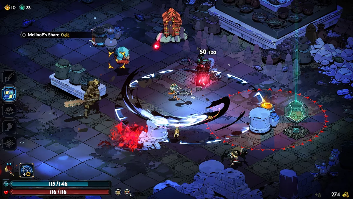Наконец, система даров от богов переработана так, чтобы игрок полагался на все элементы мувсета Мелиное: на обычную атаку, специальную, связывающее заклинание и различные усиленные вариации этих приёмов, использующие ману. Всё это — только в плюс боевой системе. В первой части можно было весь забег выстроить вокруг, скажем, обычной атаки, накладывая друг на друга соответствующие бонусы. Теперь же дары богов поощряют синергию между разными приёмами, а враги продуманы дизайнерами таким образом, чтобы игрок не игнорировал весь доступный инструментарий. Например, некоторые противники настолько быстро сокращают дистанцию, что без связывающих заклинаний не обойтись.