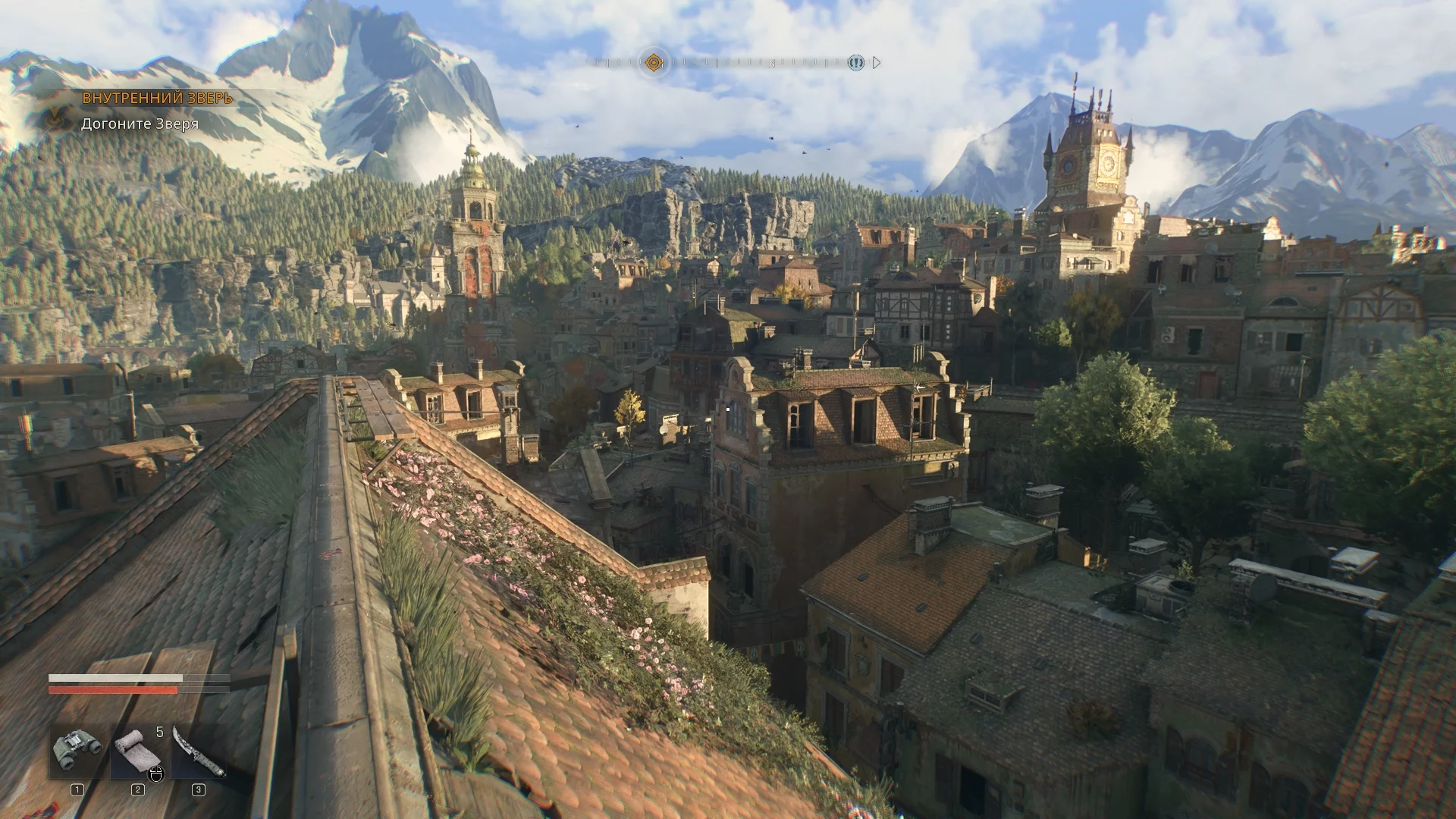 Открытый мир получился весьма самобытным и непохожим на прошлые номерные части. Большая часть территории — это сельская местность в духе дополнения The Following с лесами, парками и засеянными пшеницей полями. Небольшой город в центре карты сочетает в себе средневековую архитектуру с разноуровневой структурой. С точки зрения визуала, к нему даже не придраться. Окружение получилось разнообразным и живописным. А вот для паркура Кастор-Вудс вообще не годится. Места для зацепов не выделяются на фоне серых стен, а геометрия и расположение зданий не дают в полной мере насладиться беспрерывным забегом. В Dying Light 2 Вилледор проектировали с целью дать игроку максимально вариативный паркур, позволяющий передвигаться по крышам буквально по наитию. В The Beast из-за разноуровневости и невнятной компоновки зданий вы будете постоянно останавливаться для планирования маршрута, а также долго искать обходные пути и места для безопасного приземления с большой высоты.
