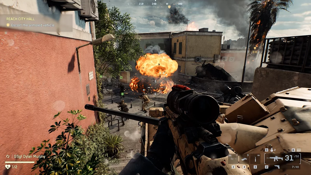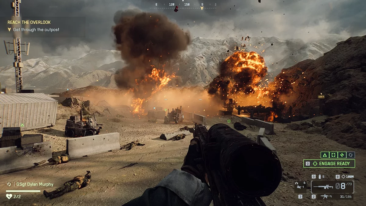 Конкретных классовых ограничений в сюжетной кампании нет. В ходе истории вам дадут побегать за нескольких членов отряда. Интереснее всего играть, конечно, за снайпера. Враги не бегают туда-сюда, как в мультиплеере, а мирно ждут, когда им поставят хэдшот. Вдобавок разработчики дадут возможность порулить дроном и управляемыми ракетами. За инженера будет ровно одна миссия, где нужно чинить танк. В остальном же большую часть заданий нужно будет проходить за классического штурмовика. Ходи да стреляй.