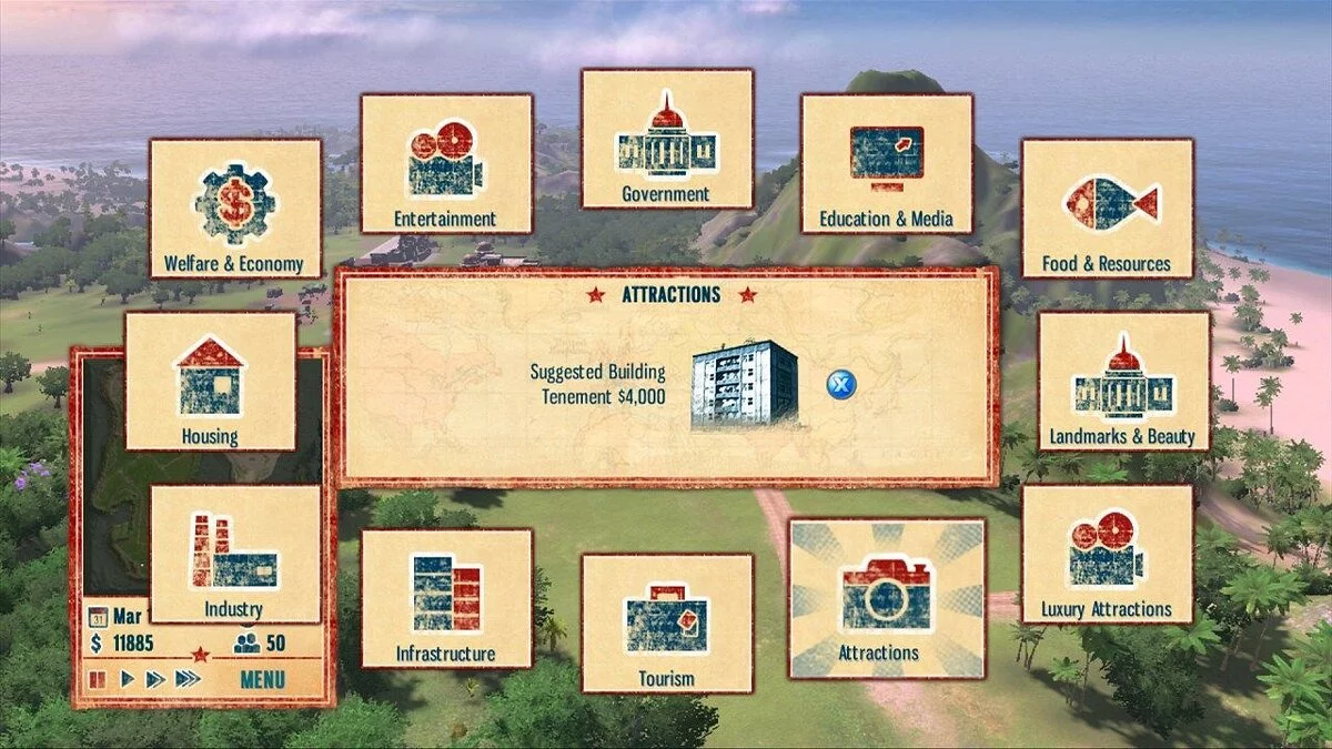 Внешне игра не изменилась. Все тот же остров, все те же жители, живущие своей жизнью, все та же пристань, на которую постоянно приплывает грузовой корабль. Но играется все это иначе, да и все 20 миссий, представленные в игре, связаны сюжетом. Созданный нами диктатор мотается по островам и решает разные экономические и политические проблемы государства. Политические отношения стали намного важнее, и теперь помимо сверхдержав появилось еще несколько стран, с которыми можно установить дружеские отношения, но основными по-прежнему являются США и СССР. Они дают нам чертежи, переводят деньги и помогают держаться на посту президента. Выборы на этот раз проходят на порядок сложнее, и переманить избирателей только с помощью красивой речи не получится, придется принимать дополнительные меры, такие как издание указа о бесплатном жилье или подтасовки результатов, которая может запросто раскрыться.