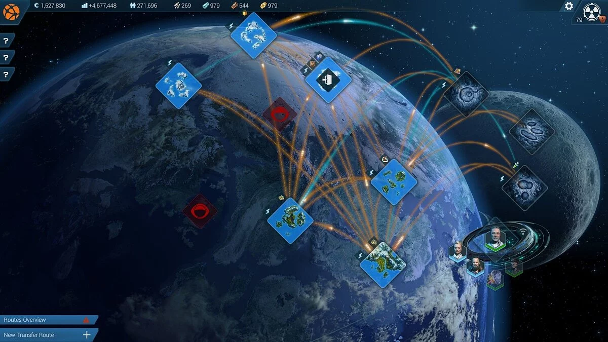 При этом вся значимая торговля задается в эдаком «глобальном меню». Там можно «проложить» торговые пути и задать расходование потоков товаров, за деньги устранить нехватку потока того или иного товара при помощи других игроков в системе глобального рынка (для этого требуется интернет) или продать излишний поток товаров, а также выкупить новый регион для застройки.