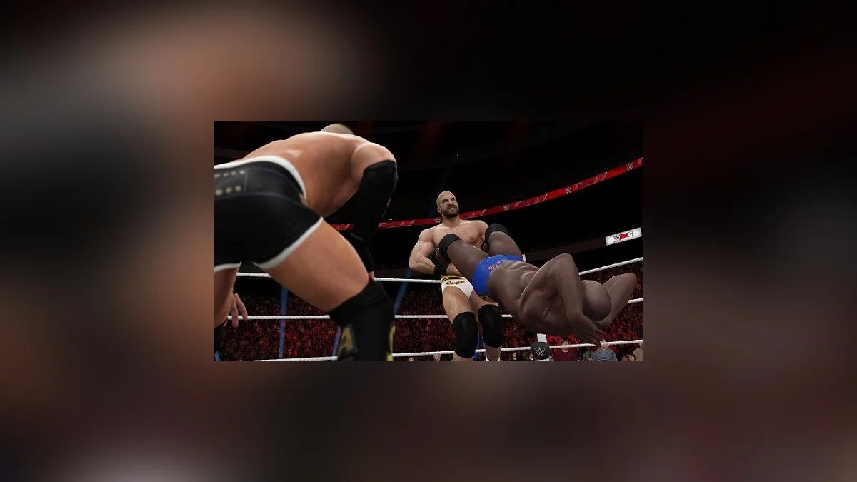не нажмёшь кнопку вовремя. А самая прелесть в том, что она появляется на доли секунды… Весь бой сводится к тому, что нужно вовремя нажимать на кнопку «F» и набирать нужное количество очков «momentum». Как только набрали эти очки, нужно успеть вовремя нажать другую кнопочку, скорее всего это будет «стрелка вверх». К этому веселью в WWE 2K16 добавляется и потрясающая анимация, которая загоняет вас в ступор. Вы можете стоять спиной к противнику, но тут же ударить его пяткой в лоб. Вот противник падает от вашего удара, но в следующий момент он запускает вас в угол. Анимация не сильно отличается от первого представителя 2002 года.