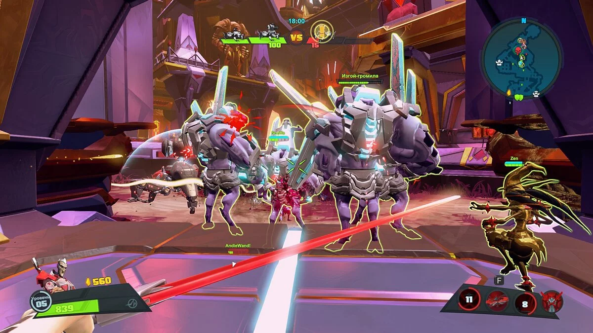 Вот мы разобрались с режимами, но что же с героями. Их здесь достаточное количество и открываются они по мере повышения вашего общего уровня. Так же у каждого героя имеется свой уровень, который делится сразу на два: во время боя и общий. Во время боя он будет выглядеть как спираль, за каждый уровень вам предлагаются на выбор два улучшения, которые сохраняются лишь на один бой. Это простая прокачка героя, как в любой игре жанра MOBA. Вы будете выбирать, улучшить ли вам радиус способности или дополнить её каким-нибудь эффектом, конечно же выбора будет гораздо больше, это для примера было сказано. А общий уровень начисляется после боя и сохраняется навсегда за каждого героя отдельно. С повышением данного уровня вам будут открываться различные модификации, облики и провокации. Он будет идти гораздо медленнее, но зато навсегда.