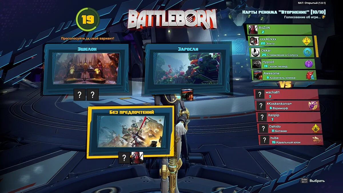 Стоит заметить, что поиск подходящих игроков может занять минут до 7 минут (рекорд был). Но пока вы ждёте игроков, вы можете зайти в «Управление» и настроить своё снаряжение в зависимости от того, за кого хотите играть. Ведь персонажей здесь много, а выбираются только вашей командой. У противников может быть точно такой же набор воителей. Вот вы всё собрали, людей дождались и теперь выбираете одну из двух карт для боя, выбираете голосованием на 10 человек и вперёд. Во время самого боя не было замечено каких-то багов, лагов или фризов. С технической стороны мультиплеер сделан прекрасно.