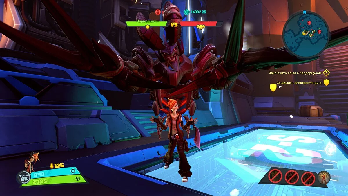 После всех защит вас будет ждать могущественный босс, которого уже не так просто завалить. Он обладает огромным запасом здоровья, а так же разными способностями. Кое-кто даже может отправить вас в другое измерение. После всех скитаний, мы возвращаемся на корабль и всё. За завершение сюжетных миссий нам дают очки опыта, внутриигровую валюту и могут открыть новых персонажей.