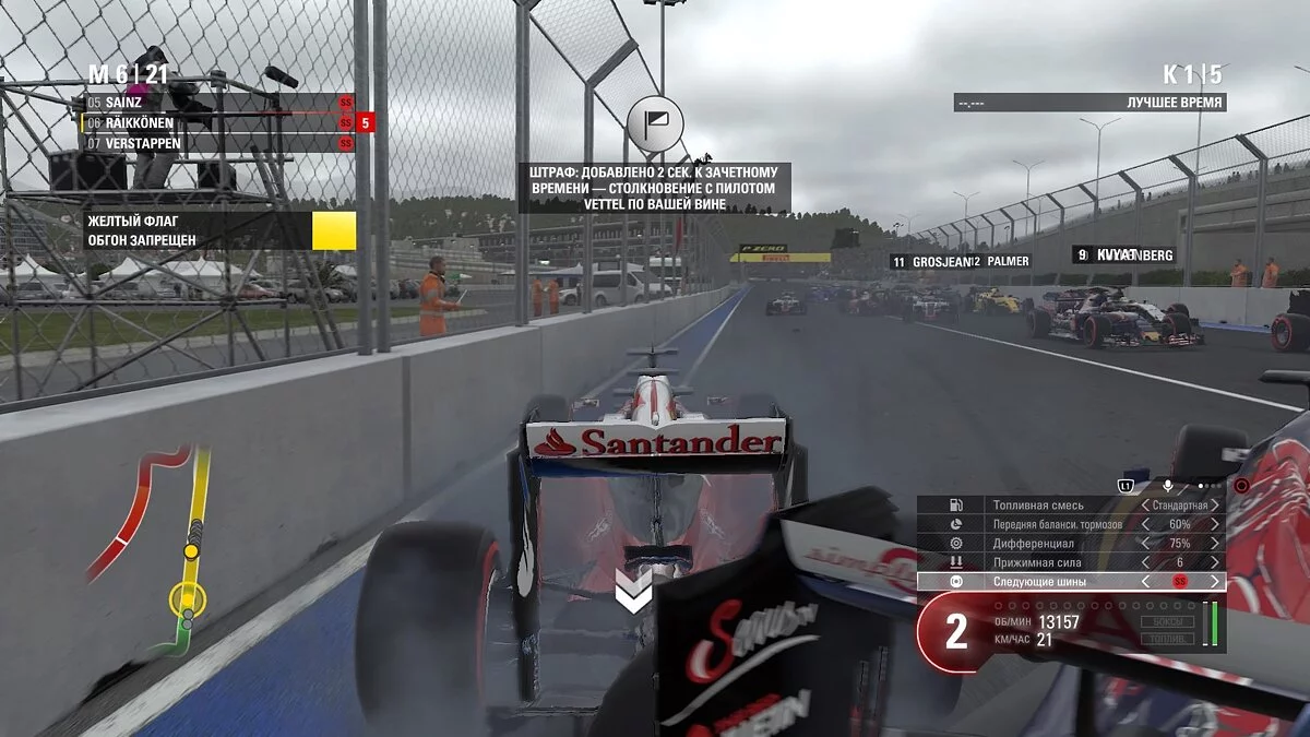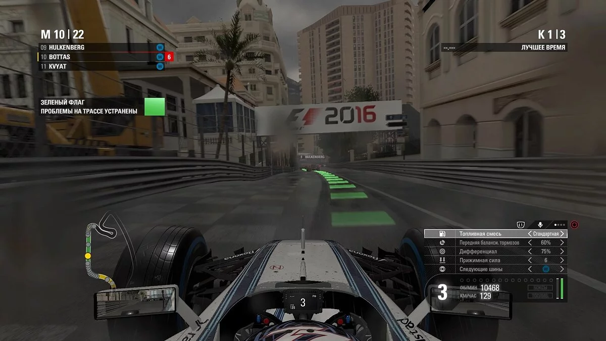 Конечно же, F1 2016 не про помощниц с жуткими текстурами и тенями из 2002 года, а про серьезный спорт. Но получилось так, что Формула-1 настолько серьезна, что обучения в данной игре недостаточно, чтобы полностью ввести вас в курс дела. Бывает, что подсказки на трассе обманывают вас, говоря, что можно уже газовать. Не тут-то было — последуете их совету и отправитесь на повторное рандеву. Вообще как тормозить, где тормозить, а где нет, где разгоняться и прочее — ничего этого никто не скажет, это придется наматывать на ус путем проб и ошибок. Будут преждевременные старты, куча металлолома на трассе, может быть и нецензурная брань за 23 круге из 30 — но рано или поздно решение найдется.