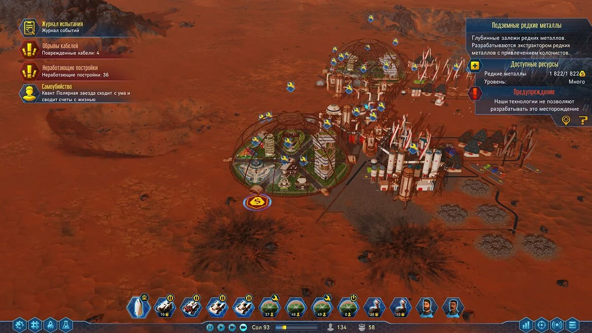 А дальше начинаются проблемы, потому что добывать металлы и редкоземельные материалы (которые можно продавать) могут только колонисты, а с постройкой первого купола на Марсе спокойная жизнь заканчивается. Дело в том, что все купола и рабочие зоны должны обмениваться ресурсами, однако когда между ними огромное пространство это затруднительно.