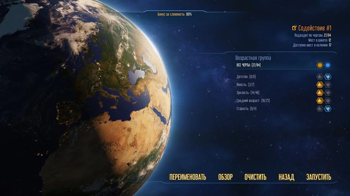 Да, процесс выбора колонистов превращается в своеобразную мини-игру, это хорошо, но откуда взялось ограничение «подходит по чертам» (на скриншотах в правом верхнем углу)? Из-за него при наличии 200 желающих едва наберется две дюжины, и то, с разными способностями, а не с тем, что нужно конкретно мне: