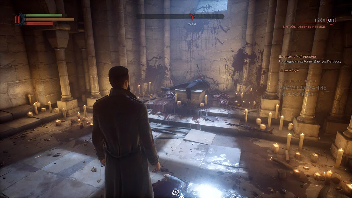 Система прогрессии у разработчиков получилась довольно неплохой. Нам предлагают большой набор вампирских способностей, каждая из которых имеет свои определенные особенности. Прокачать все и сразу не получится, поскольку для развития каждого навыка требуется кровь, которая в Vampyr служит также очками опыта. Кровь можно добывать двумя способами: убивать мирных граждан, либо же спокойно выполнять сюжетные задания. В первом случае герою можно прокачать практически все ветки способностей, но повествование при этом уйдет в мрачную сторону и отразится на концовке. При более лояльном прохождении игра будет заметно сложнее, так как персонаж не получит самые мощные навыки. Очень порадовало, что разработчики добавили в игру возможность отменить все развитые ранее способности и распределить очки опыта повторно. Таким образом, мы можем экспериментировать со стилем прохождения.