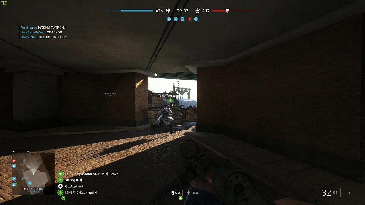 Патронов на «респауне» выдается гораздо меньше, чем персонаж способен нести. Хватает их на трех, от силы четырех противников, после чего придется прибегнуть к мародерству или найти коробку с боеприпасами, которую могут ставить солдаты класса поддержки. Все это добавляет игре реализма, но сильно бьет по балансу.