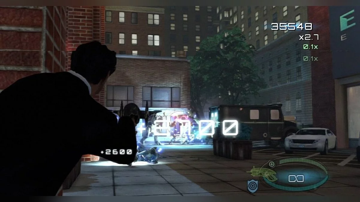 Игровые ролики крайне утомительны, нудны и продолжительны. В них нет никакого смысла, да и глядя на это «кривое творение» только и хочется, что зевать. Ну ладно, перевалили мы пару сотен инопланетян, это уже всё как то приелось и тут, разработчики решают добавить чего-то свеженького, а именно полёты на машине агентов MIB. Казалось бы, вот сейчас будет интересно! Ничего подобного, машина летит по маршруту абсолютно самостоятельно, нам же остаётся только расстреливать инопланетян из встроенных бластеров. Опять на те же грабли, что и с наземными боями.