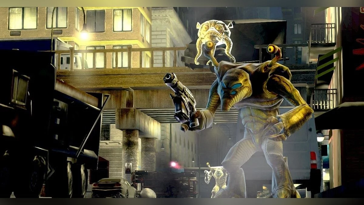 Управление персонажем? Забудьте об этом. Я не в том смысле, что нам не придётся управлять главным героем, я в том смысле, что кроме того, как стрелять в толпы некачественных инопланетян, нам не придётся управлять персонажем. Единственное, что мы можем делать — это выглядывать из-за укрытий и стрелять по врагам, а вот передвигается наш персонаж самостоятельно. Зачистил определённую точку из одного укрытия, персонаж автоматически передвигается до другой точки и снова прячется за что-нибудь. Нам только и остаётся, что выглядывать из-за укрытий и стрелять в однотипных инопланетян, ну а в конце таких баталий нас ожидает примитивный босс, который, разве что, имеет большой запас здоровья, а уничтожается он всё по той же схеме, что и обычные солдаты-инопланетяне.