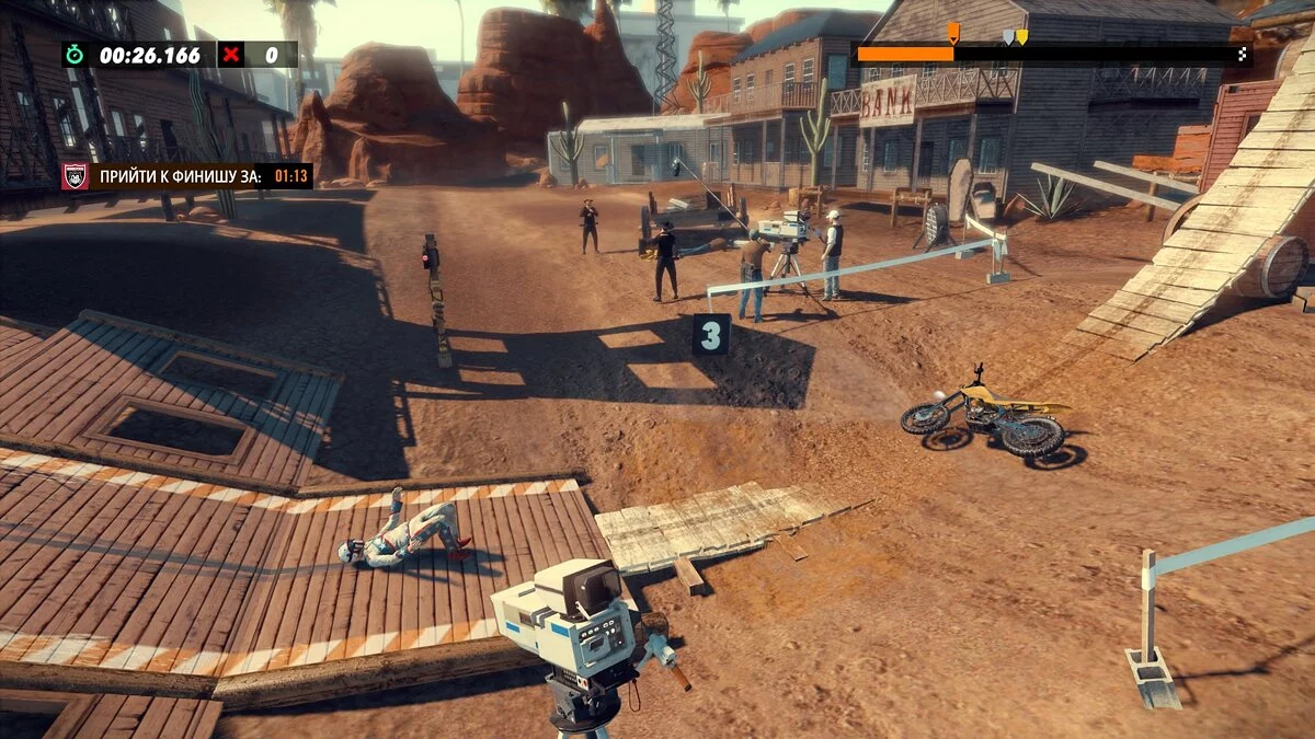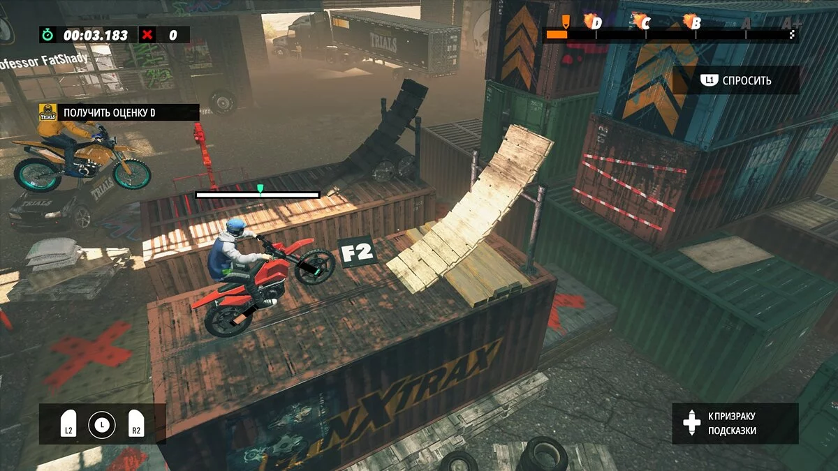 Очень понравилось, что вместо одиночной езды или соревнования с ботами, в Trials Rising почти все гонки проходят с призраками. Это реальные игроки, которые когда-то завершили тот самый уровень, на котором проходит текущая гонка. Таким образом, когда проходишь тот или иной уровень, игра записывает все эти результаты, а затем может воспроизвести их в игре другого человека.