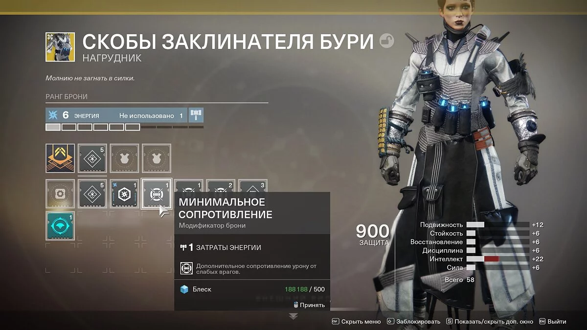 Каждый «мод» требует определенное количество энергии, а емкость всякого предмета ограничена десятью ячейками, так что полет фантазии ограничен необходимостью эти ячейки сначала открывать, а затем выбирать наиболее полезные моды для текущего «билда».