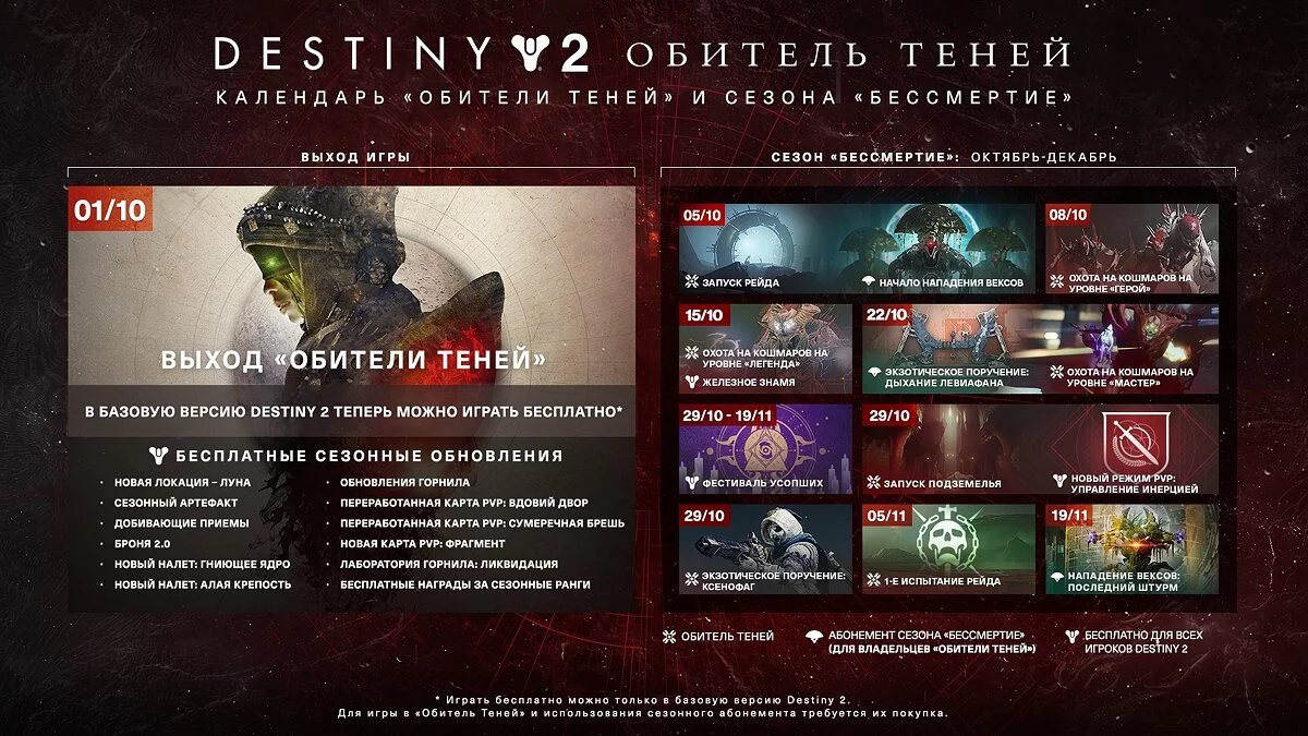 Помимо всего этого добра Bungie также предоставят пользователям бесплатной версии полный доступ ко всем сезонным мероприятиям — Железное знамя, Фестиваль усопших, Рассвет и другие. Все покупки за реальные деньги только косметическое, в этом игры обеих версиях полностью равноправны.