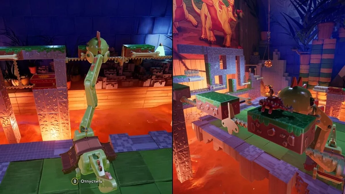 Разумеется, невозможно создать масштабный проект на одних уникальных механиках и мини-играх. Неизменными остаются базовые способности Коди и Мэй: двойной прыжок, рывок, спринт и возможность хвататься за уступы или активные элементы. Всевозможные платформы и рельсы, на которых можно прокатиться, пусть и ловко маскируются под эстетику уровня, но по существу остаются платформами и рельсами.