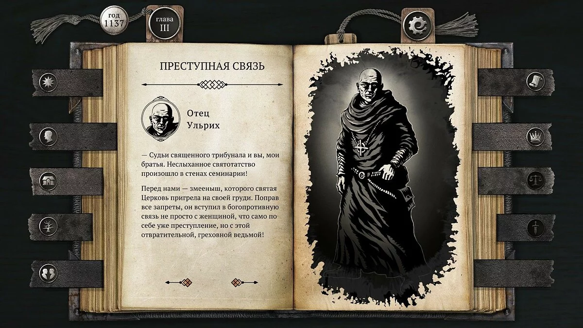Что отдельно порадовало, так это три независимые ветви развития событий во второй половине игры. Можно отыгрывать судью, священника или подпольщика, и каждый встретит уникальные ситуации, персонажей и очень непростые решения.