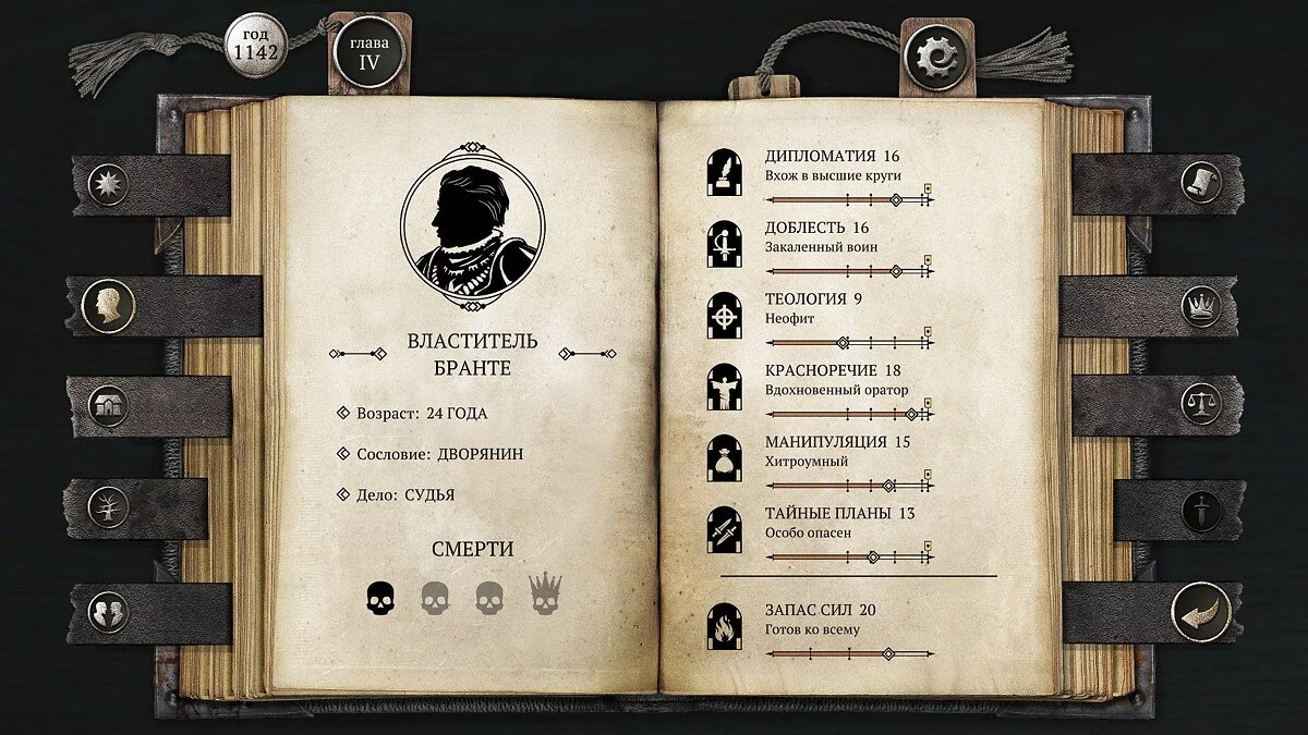 Так я понял, что баланс — основа выживания. Какие-то события не влияют ни на что, из них надо брать по-максимуму или просто игнорировать. Где-то придется пожертвовать ненужной характеристикой в угоду семейному богатству. Или потратить репутацию на развитие карьеры. И обязательно нужно заручиться протекцией влиятельной персоны, чтобы легко продавить непопулярное решение.