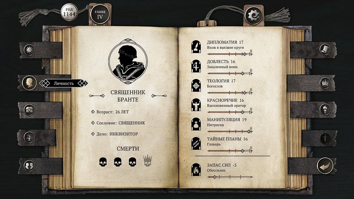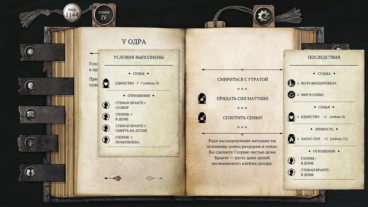 В третьем прохождении я сосредоточился на развитии персонажа и прокачал половину личных характеристик на максимум, но всё развалилось в конце четвертого акта, потому что я не учёл влияние внешних факторов и опасность распада семьи.
