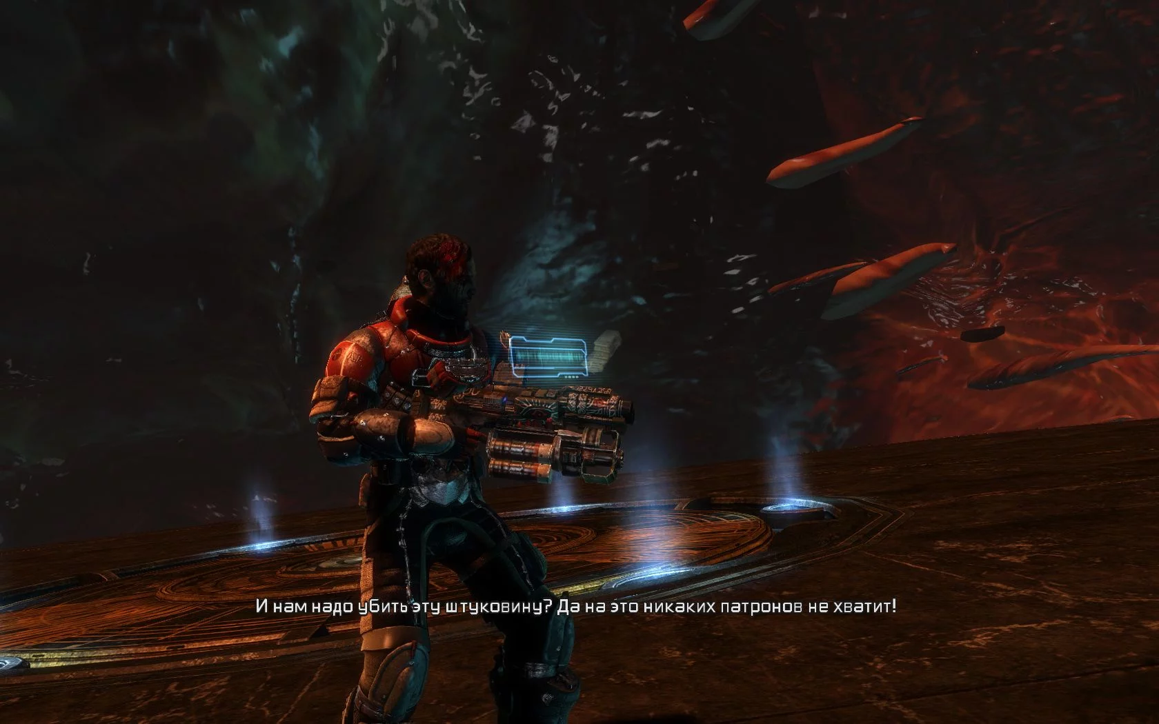 Даже на максимальных настройках графики невозможно увидеть динамическую игру теней, немаловажных в аспекте хоррора. Позабыли разработчики и о значительных темных пространствах, в которых светились бы злобные глаза некроморфов. В предыдущих играх можно было обосраться от страха от одной подобной картины. Руки игрока буквально сводил страх от неизвестности. А что в Dead Space 3? Некроморфов видно за 100 метров, даже в полной темноте. Пока те подбегут к игроку, он успеет выпить кофе и почитать журнальчик, после чего убьет врага одним выстрелом. Подумать только, за всю игру, ни разу, НИ РАЗУ игроки не оказывались в полной темноте окруженные некроморфами. Потому что разработчики просто не в силах реализовать качественно затемненные помещения.