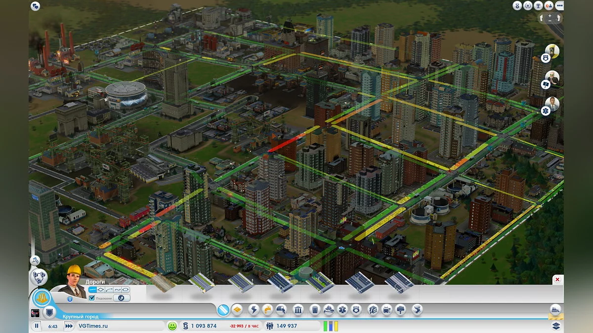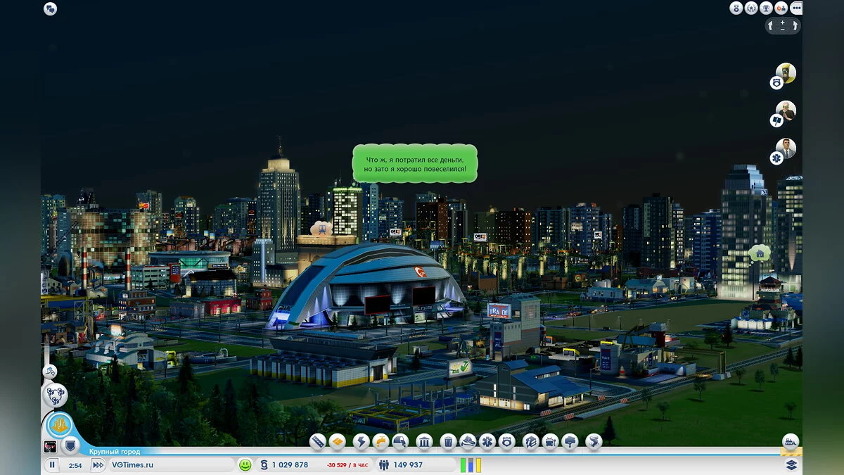 Разработчики достаточно сильно ограничили фантазию игрока, сузив размер карты до разумного минимума. Треть карты обычно уходит под жилье (зеленая зона), десятая часть — под коммерческие здания (синяя зона) и фабрики (желтая зона), а все оставшееся место займут производственные комплексы и добывающие комбинаты. Или же стадионы и выставочные центры. Это уже зависит от того, какую специализацию вы выберете для развития. Если выбранная вами ранее карта обладает залежами угля, нефти или руды, то вы можете получать прибыль от их переработки. Если же местность привлекает много туристов, то тогда вам лучше строить такие посещаемые места, как стадионы и культурные памятники. При желании вы всегда сможете построить небольшой аэропорт или морской порт, а также добавить казино и бордель.
