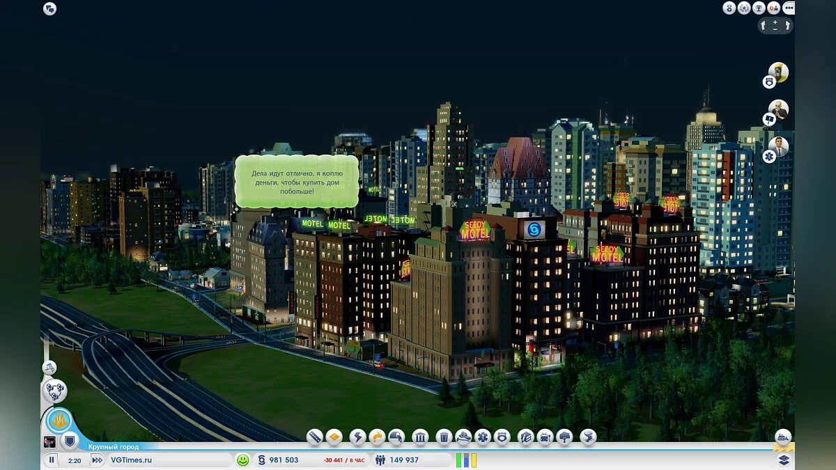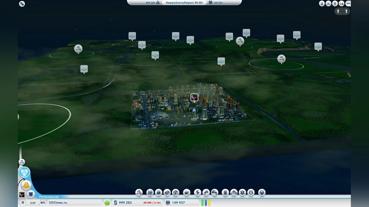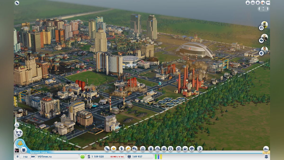 В результате получается, что постройка города не займет и восьми часов. За это время город не только получит нужную специализацию, но и разрастется до пределов карты, а жить в нем будут 100-150 тысяч человек. Как вы понимаете, обеспечение такого количества людей коммунальными условиями требует адекватного количества соответствующих служб. Вот тут вы и столкнетесь с главной проблемой: когда город почти застроен очень трудно довести его состояние до идеального. Вам просто не хватит земли под это, поскольку ее нельзя докупить и тем самым расширить размер карты. А освобождать место, разрушая уже построенные здания, нерационально.