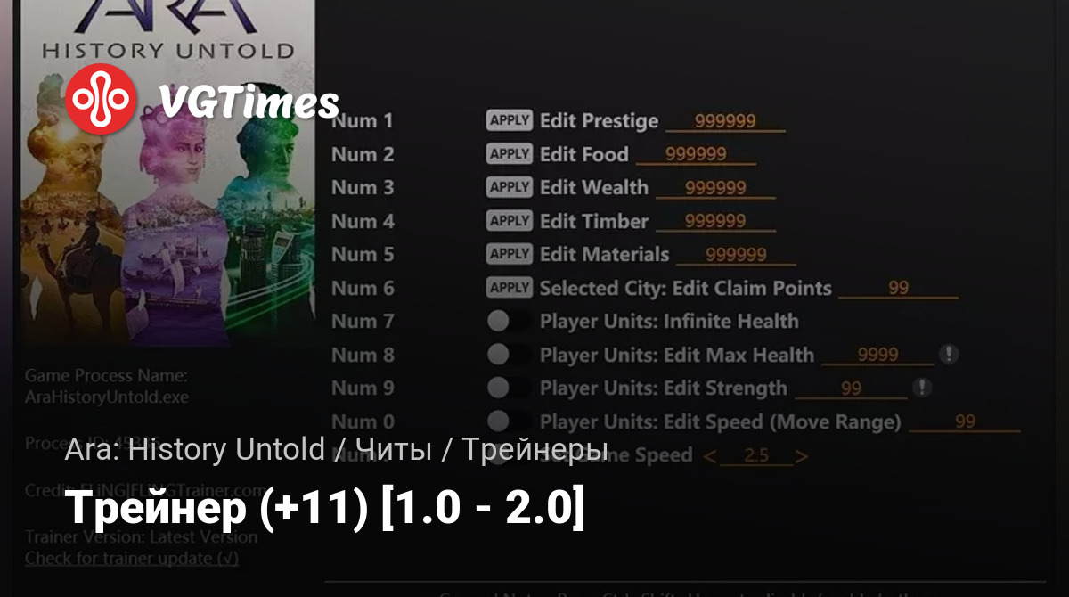 • Ara: History Untold — Трейнер (+11) [1.0 - 2.0]