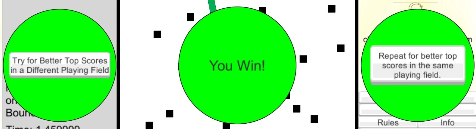 Игрок заставляете мяч отскакивать от специальных поверхностей до тех пор, пока он не попадет в цель. При этом важно не задевать препятствия, стены, потолок или пол. Можно проходить разные уровни или добиться максимального количества очков на одном.