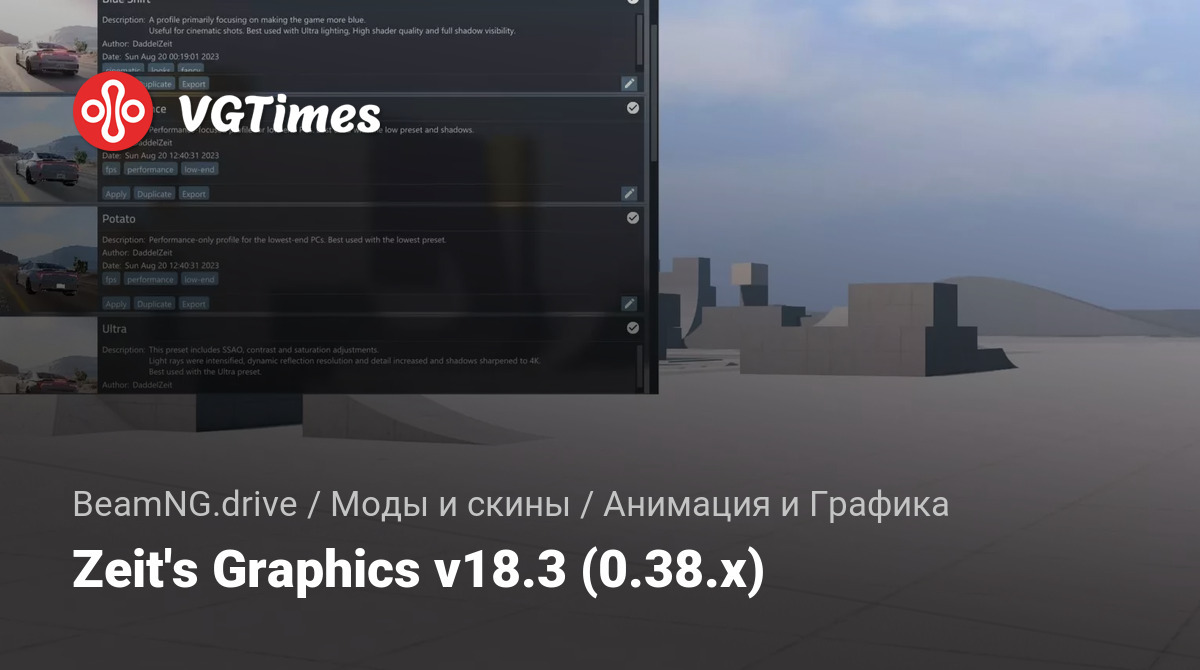 Этот мод добавляет гибкий инструмент для улучшения или намеренного упрощения графики в BeamNG.drive. Zeit’s Graphics позволяет быстро менять визуальные настройки игры буквально в несколько кликов без сложных конфигураций и ручного редактирования файлов.
