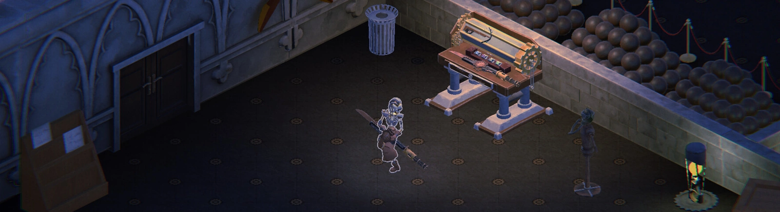 Главный герой исследует многоуровневый музей, заполненный испорченными роботами. На собранные обломки павших противников можно улучшать оружие, чтобы настроить его под свой стиль игры, например, изменить дальность атак или набор движений.