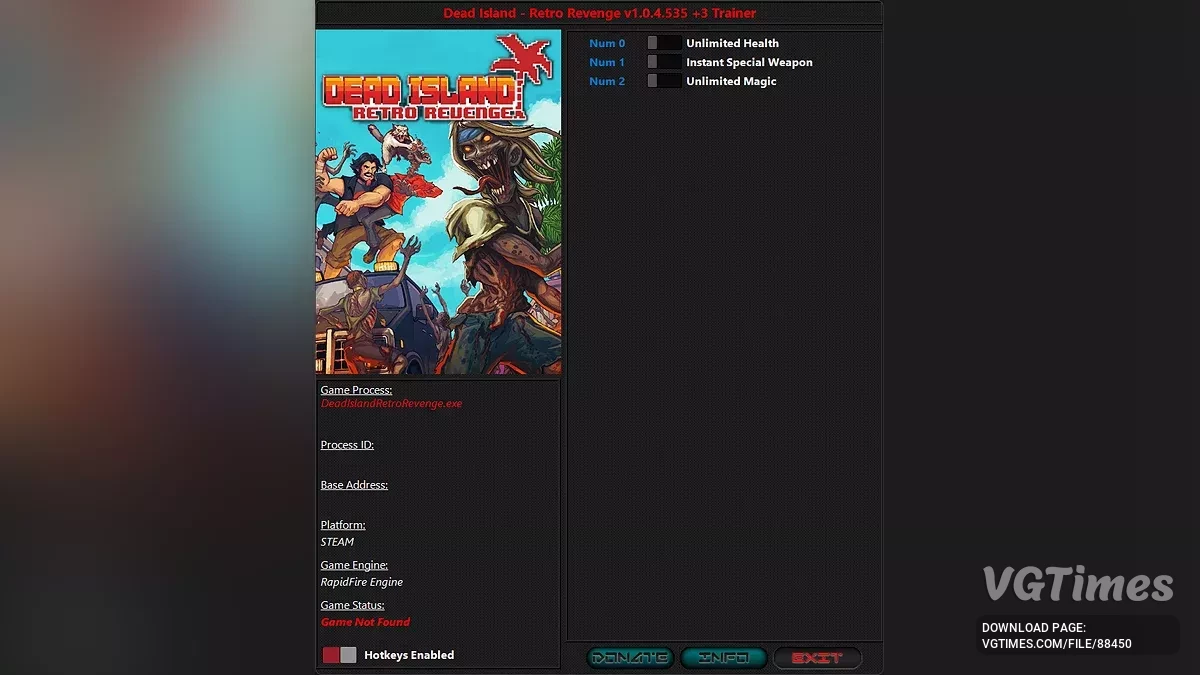 Функции и команды: Num 0 — Unlimited Health — Бесконечное здоровье. Num 1 — Instant Special Weapon — Мгновенное специальное оружие. Num 2 — Unlimited Magic — Бесконечная магия. ...