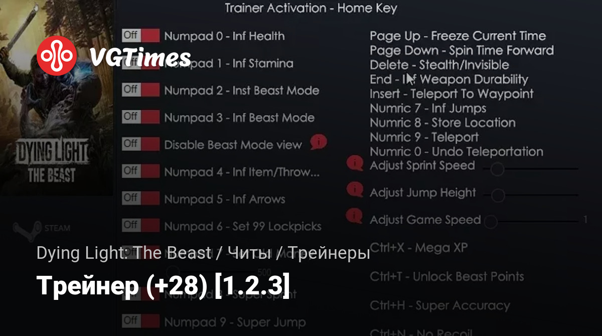 - Numpad 3 — Inf Beast Mode — Бесконечный режим зверя.