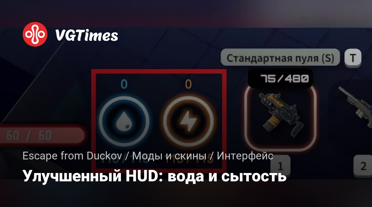 - Распаковать папку "Better Hydration & Energy HUD" в \Escape From Duckov\Duckov_Data\Mods;