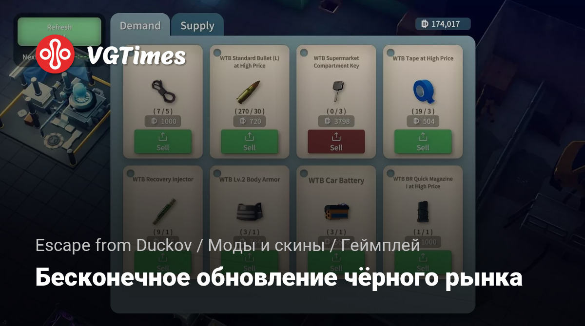 Этот мод позволяет бесконечно обновлять товары на черном рынке.