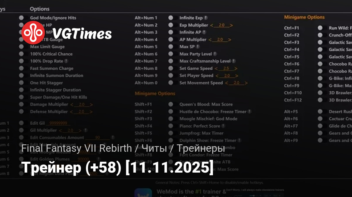 - Alt+F7 – Полет Чокобо: Максимальное количество очков.