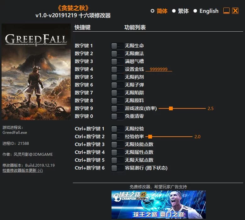Дата создания/обновления трейнера: 16.06.2021 Язык трейнера: Английский Количество функций: 13 Во время игрового процесса нажимаем на нужные клавиши (которые можно редактировать) и получаем желаемый результат. Внимание: Для использования трейнера ...