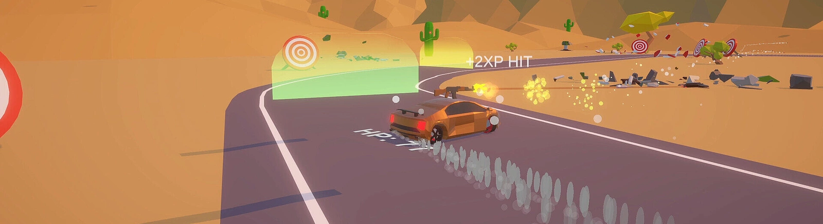 Динамичная игра, в которой нужно одновременно управлять машиной и стрелять по противникам. Нужно зарабатывать очки и повышать уровень, чтобы получать награды. По мере прокачки можно открывать новые автомобили или устанавливать на крышу более мощные пушки.