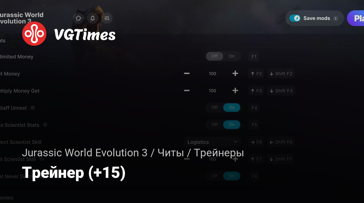 - Unlimited Dinosaurs Stamina — Бесконечная выносливость динозавров.