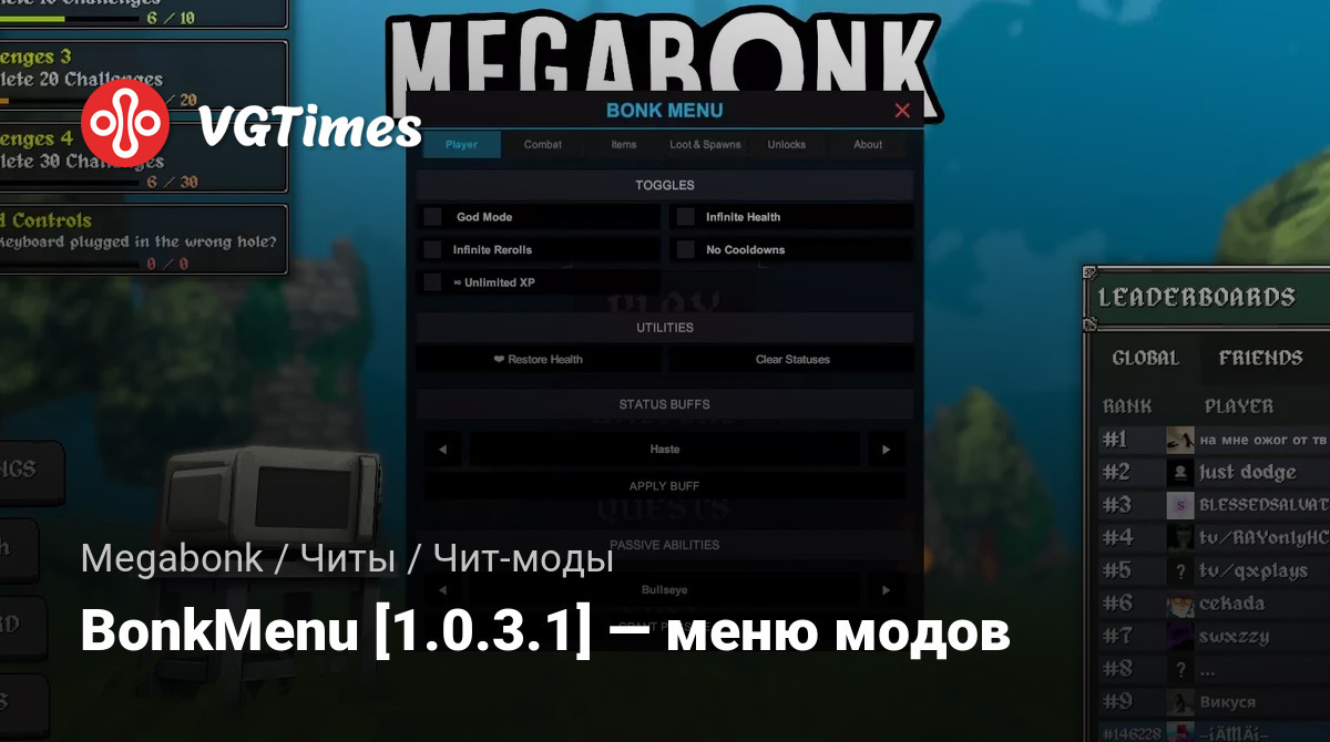 BonkMenu — это многофункциональное мод-меню с возможностью прямого управления игровыми системами.