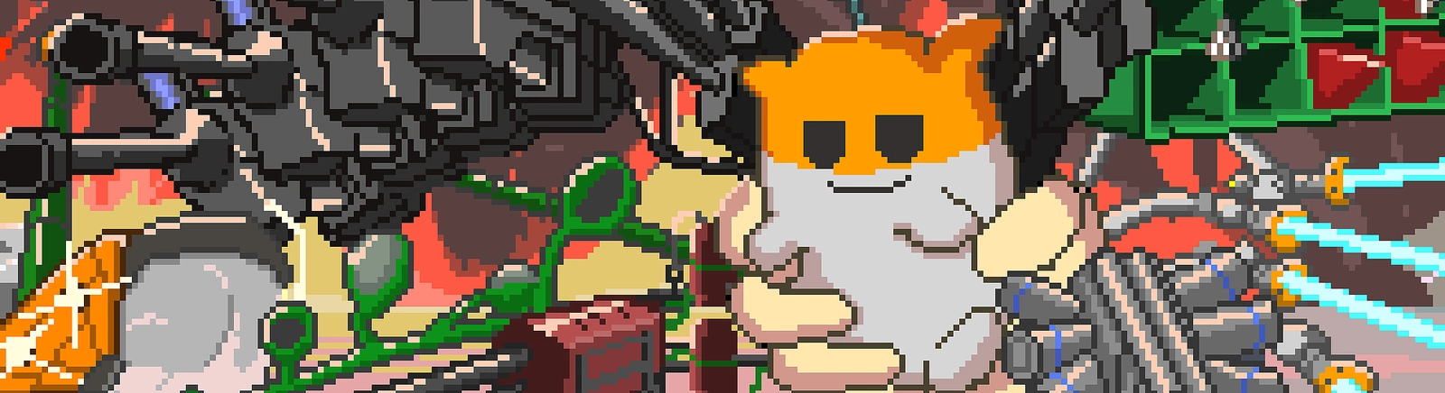 Пиксельная игра, в которой нужно сражаться с противниками, используя вооруженного хомячка. С врагов падают семена, которые нужны для выбора пушек и прокачки навыков — каждый раз нудно выбирать один из нескольких случайных. Между заданиями можно гладить хомяка.