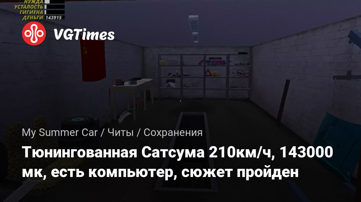 Игры My Summer Car Файлы Сохранения Тюнингованная Сатсума 210км/ч, 143000 мк, есть компьютер, сюжет пройден