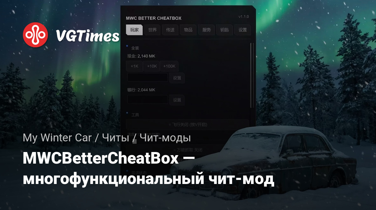 Универсальное чит-меню для My Winter Car с возможностью управления характеристиками персонажа, телепортацией, спавном предметов, контролем погоды, изменением времени и многим другим. Вдохновлено оригинальным MSC CheatBox.