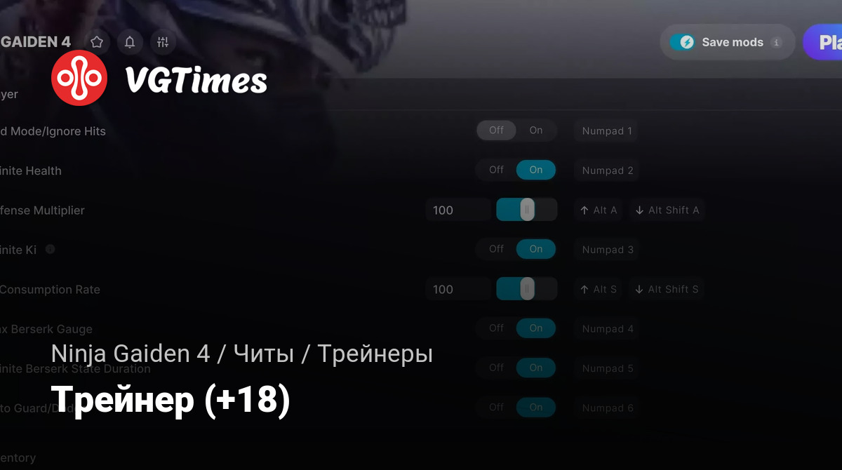 - God Mode/Ignore Hits — Режим бога/Игнорировать урон.