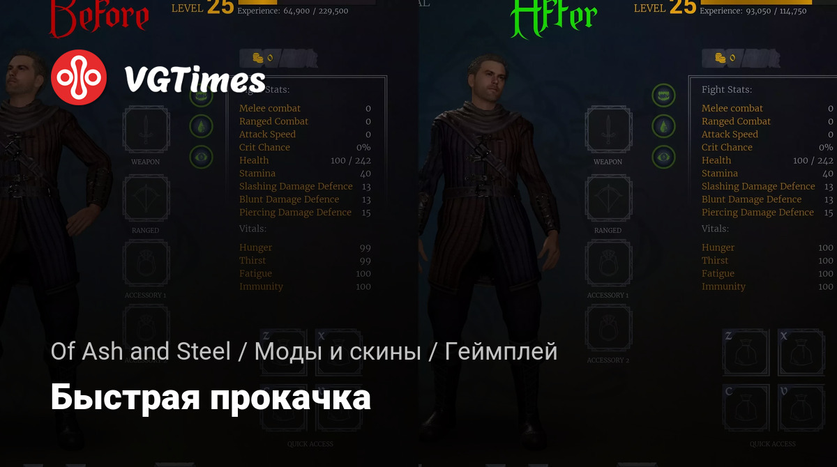 - Требования к опыту фиксируются в сохранении, поэтому для отключения мода также потребуется начать новую игру или использовать старое сохранение.